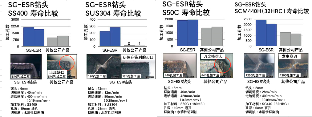 SG-ESR钻头,通过提高切屑分断性和排出性,可对多种加工材料进行稳定加工