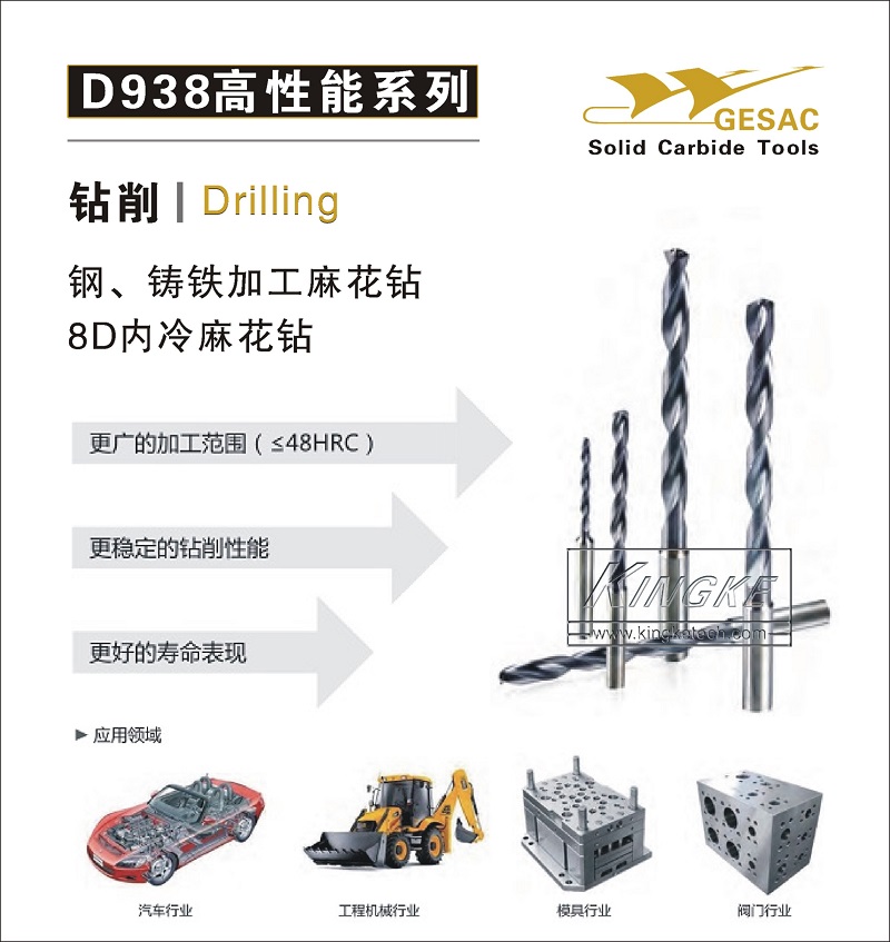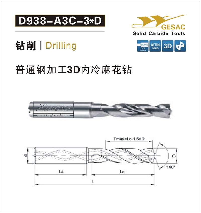 金鹭D938系列通用加工3倍径内冷麻花钻D938-A3C